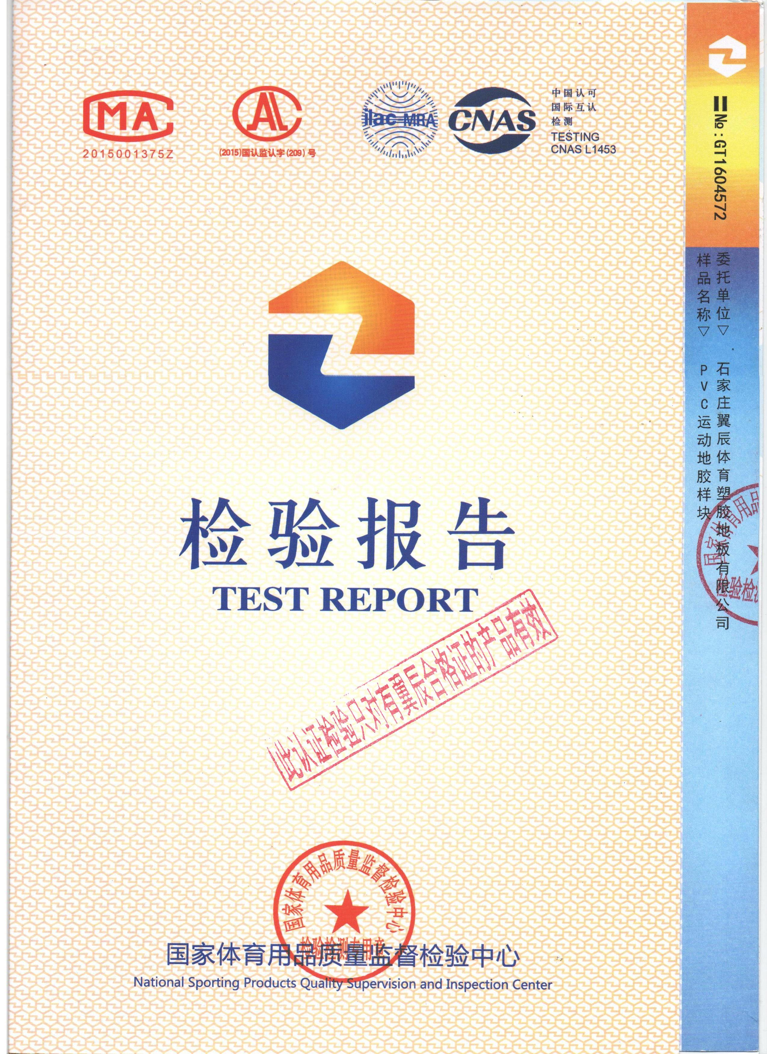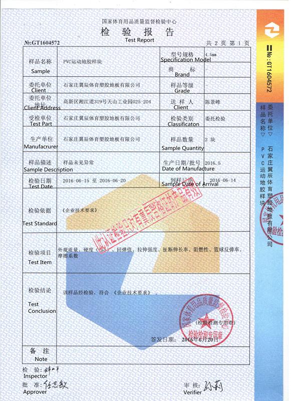 如沒特殊注明,文章轉載請注明來自“翼辰地板”PVC運動地板-國家體育用品質量檢驗報告