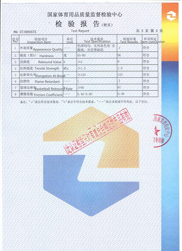 PVC運動地板-國家體育用品質量檢驗報告